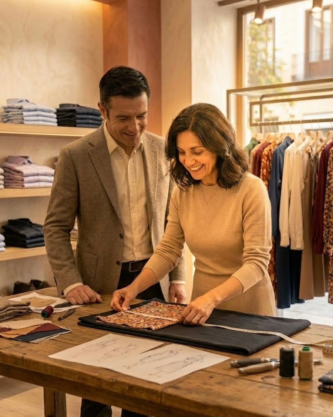 En Juan & Pilar Madrid, todo empieza con nuestra pasión de toda la vida por la moda. Juan se formó en Gestión de Moda y Retail y Pilar en Diseño y Estilismo de Moda. Tras varios años trabajando en el sector entre boutiques y proyectos de estilismo nos conocimos, nos convertimos en pareja y tomamos una decisión clara: crear nuestra propia tienda con una visión más humana y cercana.